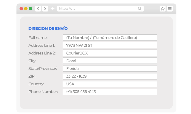 los datos que debes suministrar al proveedor o tienda Online, para que pueda despachar tu producto a Miami